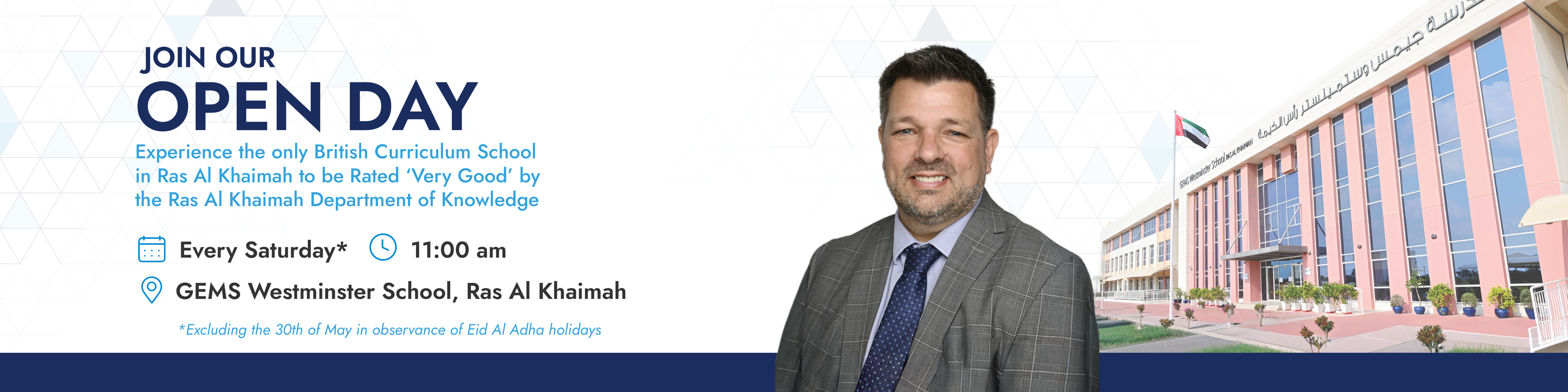 Every Saturday in May*, we welcome families to join one of our upcoming Open Days at GEMS Westminster School – Ras Al Khaimah, the only British Curriculum school rated ‘Very Good’ by the Ras Al Khaimah Department of Knowledge.